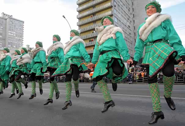 Hormis les Etats-Unis, la Saint Patrick est fêtée au Canada, en particulier à Montréal qui accueille la plus grande parade du pays depuis 1824. La Saint Patrick est même un jour férié dans la province de Terre Neuve et du Labrador. En Europe, la Grande-Bretagne est évidemment en tête des festivités. Londres accueille une parade depuis 2002, mais la plus grande se tient à Birmingham, qui se présente comme la 3ème plus grande parade de la Saint Patrick dans le monde, après celles de New York et Dublin. De nombreux irlandais viennent également assister aux courses de chevaux du Cheltenham Festival, qui coïncide habituellement avec la Saint Patrick. Munich, Copenhague ou Moscou sont d’autres exemples de villes accueillant des parades de la Saint Patrick. Mais c’est bien le monde entier qui a une partie de son cœur en Irlande le 17 mars !